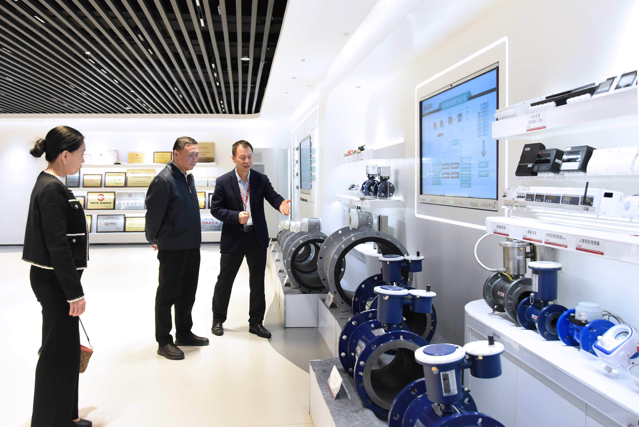 在艾科產(chǎn)品體驗中心,公司總經(jīng)理張江民重點介紹了艾科發(fā)展歷程、業(yè)務(wù)板塊布局等發(fā)展情況,隨后進一步參觀了艾科0.2級電磁流量計、一級電磁熱量表、智能電表、電磁水表等核心硬件產(chǎn)品的優(yōu)勢性能、創(chuàng)新功能,特別介紹了艾科近年來協(xié)助中信環(huán)境技術(shù)建設(shè)的的潮南園區(qū)平臺、集團級智慧水務(wù)管理平臺情況以及為各區(qū)域公司提供智能儀表和自控系統(tǒng)改造服務(wù)情況。通過展示與交流,趙翔對艾科在智能儀表自控方面的產(chǎn)品創(chuàng)新能力和豐富經(jīng)驗給予了充分認可。