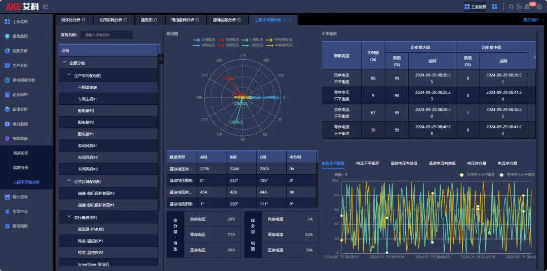 對諧波、不平衡度等專業(yè)電能質(zhì)量參數(shù)進行持續(xù)監(jiān)測,實現(xiàn)對配電設(shè)備實時監(jiān)測和故障診斷,提升運維效率,為企業(yè)生產(chǎn)用電保駕護航。