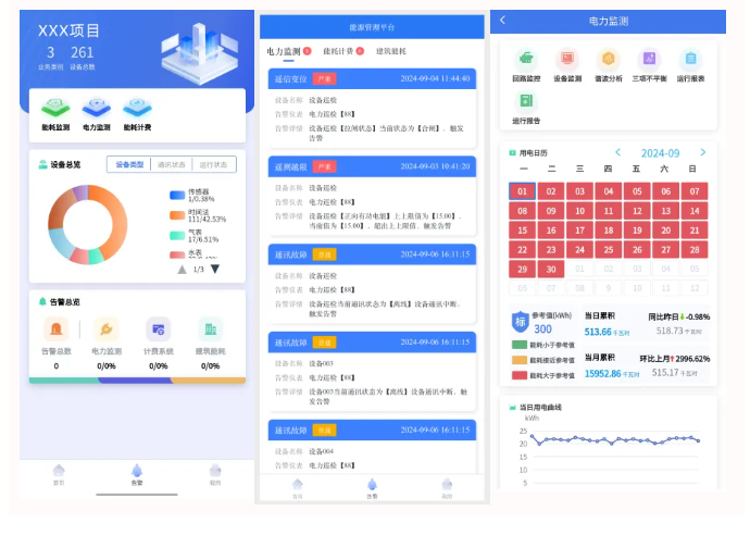 智慧能源管理移動端包括APP和小程序(公眾號),項(xiàng)目管理人員可以通過手機(jī)APP查詢各類能耗用量明細(xì)和能耗告警,實(shí)現(xiàn)設(shè)備監(jiān)測、控制和運(yùn)維等功能,終端用戶可以通過小程序(公眾號)實(shí)現(xiàn)余額充值、賬戶管理、用量查詢、賬單查詢功能。