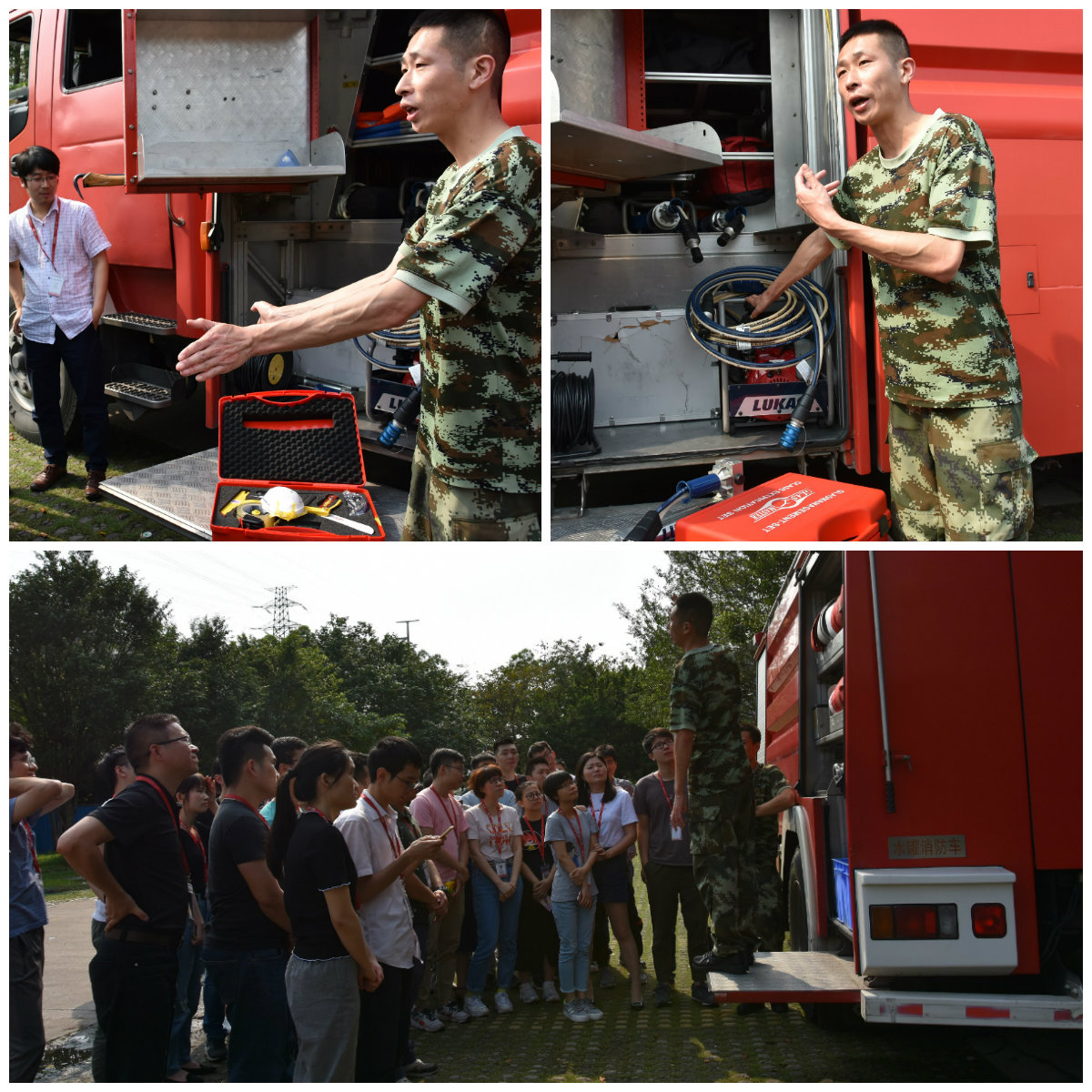 首先苗班長給我們介紹了消防車的內(nèi)部結(jié)構(gòu),并詳細(xì)講解了各種消防設(shè)備的用途和使用場景。第一次有機會如此近距離接觸消防車,艾科小伙伴在為種類繁多的消防設(shè)備所震撼的同時,還深深感受到了消防員工作的繁重和艱巨,不禁對逆火英雄消防員們肅然起敬!