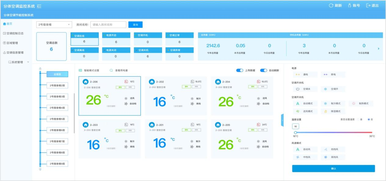通過在房間內(nèi)安裝分體空調(diào)控制器,結(jié)合遠程智能管理系統(tǒng)平臺,可集中監(jiān)控空調(diào)運行狀態(tài),對獨立分布在各個房間的空調(diào)進行統(tǒng)一管理。通過系統(tǒng)平臺集中監(jiān)控或通過手機操控,實現(xiàn)高效管理,避免能源浪費。
