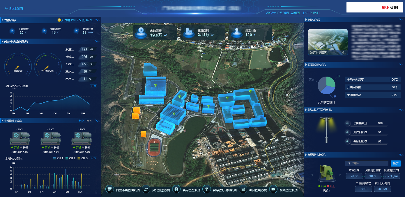 艾科以園區(qū)管理需求為中心,建設(shè)綜合智慧能源管理平臺(tái),整合高效中央空調(diào)系統(tǒng)、聯(lián)網(wǎng)溫控系統(tǒng)、智慧路燈照明系統(tǒng)、新風(fēng)控制系統(tǒng)、視頻監(jiān)控系統(tǒng)、風(fēng)冷熱泵系統(tǒng),有效提升園區(qū)能源利用效率與管理水平,助推園區(qū)能源數(shù)字化轉(zhuǎn)型與智能化升級(jí)。