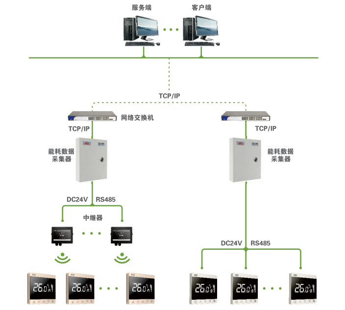 通過(guò)對(duì)風(fēng)盤(pán)末端設(shè)備進(jìn)行遠(yuǎn)程管控,對(duì)室內(nèi)溫度、設(shè)置溫度、風(fēng)速、運(yùn)行模式等參數(shù)進(jìn)行采集、分析,對(duì)能源使用進(jìn)行數(shù)據(jù)分析、分類(lèi)統(tǒng)計(jì)、指標(biāo)化管理,為項(xiàng)目實(shí)現(xiàn)節(jié)能運(yùn)行與可視化管理提供大力支持,讓能源管理實(shí)現(xiàn)信息化、智能化、精細(xì)化,以管理促節(jié)能,實(shí)現(xiàn)辦公樓綠色節(jié)能改造。