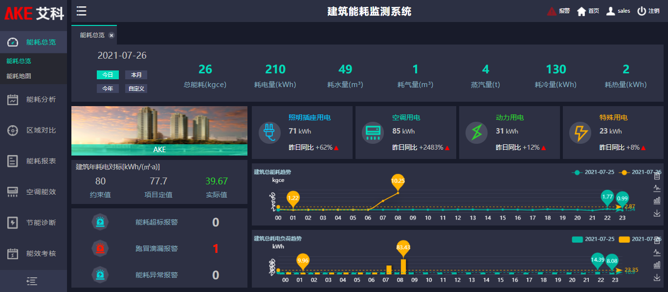 管理促節(jié)能,通過我司智慧建筑能源管理平臺可了解建筑整體的能源消耗情況,對能耗指標(biāo)進(jìn)行逐級分解,從而降低能耗。