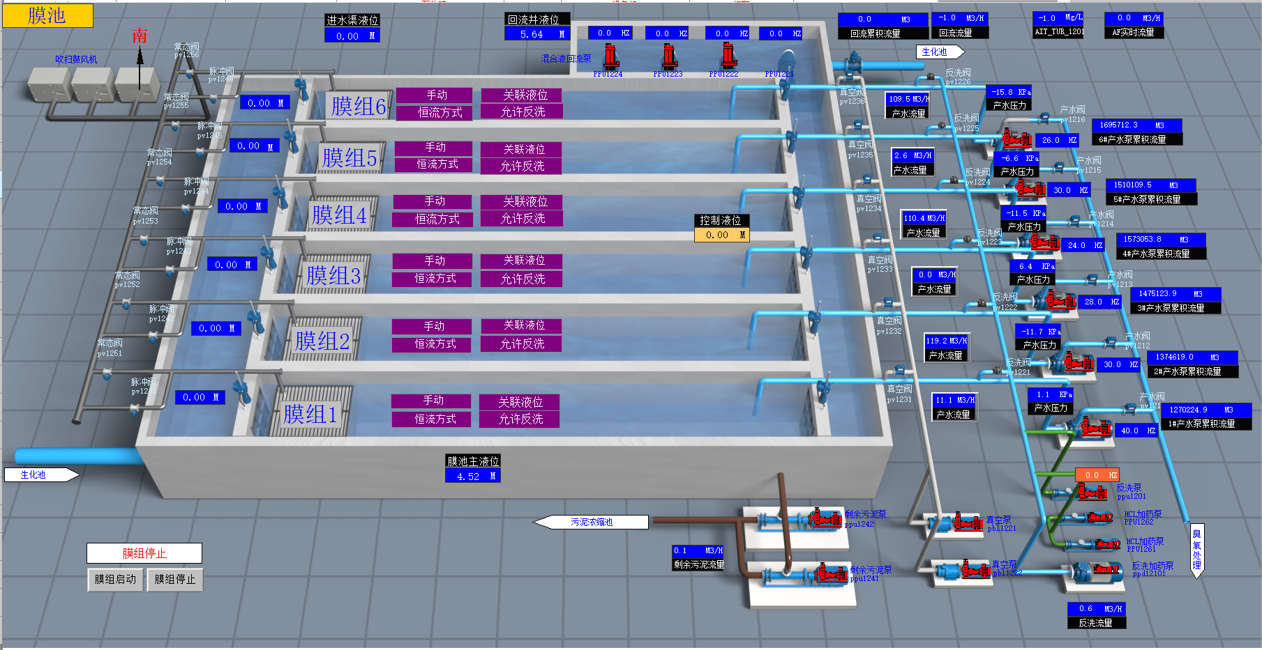 污水廠工藝組態(tài)監(jiān)控系統(tǒng)界面圖